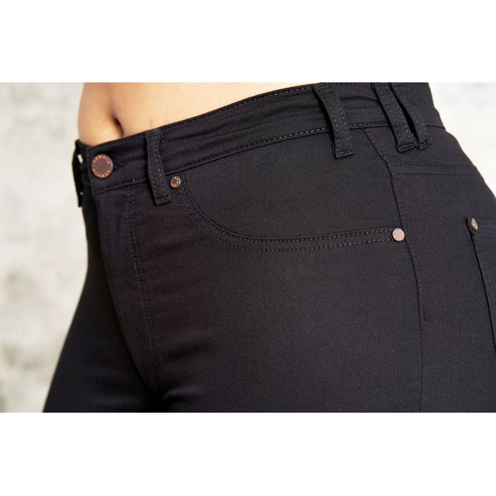 Slim Fit. Studio Clothing designer bukser, der er tilpasset virkelige kropsmål for at opnå den optimale pasform og størrelse. Deres fitting-koncept er udviklet ud fra en undersøgelse af over 6500 kvinders kropsmål. Dette har resulteret i to forskellige pasforme på alle deres modeller: Carmen og Ashley. Carmen har ekstra plads omkring hofterne og lårene, mens Ashley har en lige pasform, der er ideel til kvinder, der har fylde omkring livet. Bukserne vil udvide sig med 5% +/- Materiale: 69% Bomuld | 27% Polyester | 4% Elastan
