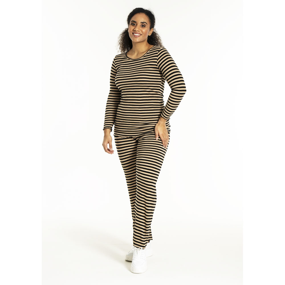 Petra rib buks fra Sandgaard. Super blød buks i rib kvalitet. Afslappet og behagelig pasform med elastik i taljen. Materialet er meget strækbart.