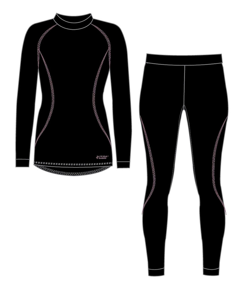 Ensfarvet 2-delt skiundertøj til kvinder lavet af blød og behagelig bambus.